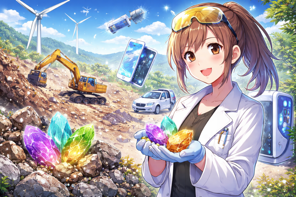 今回は、最近また注目されている「レアアース」について、わかりやすくまとめてみたよ!レアアースって聞いたことあるけど、実際どんなもの?何に使われてるの?って思ってる人も多いはず。しおかなも最初はよくわかんなかったけど、調べてみるとめちゃくちゃ大事な資源だったんだよ〜!
